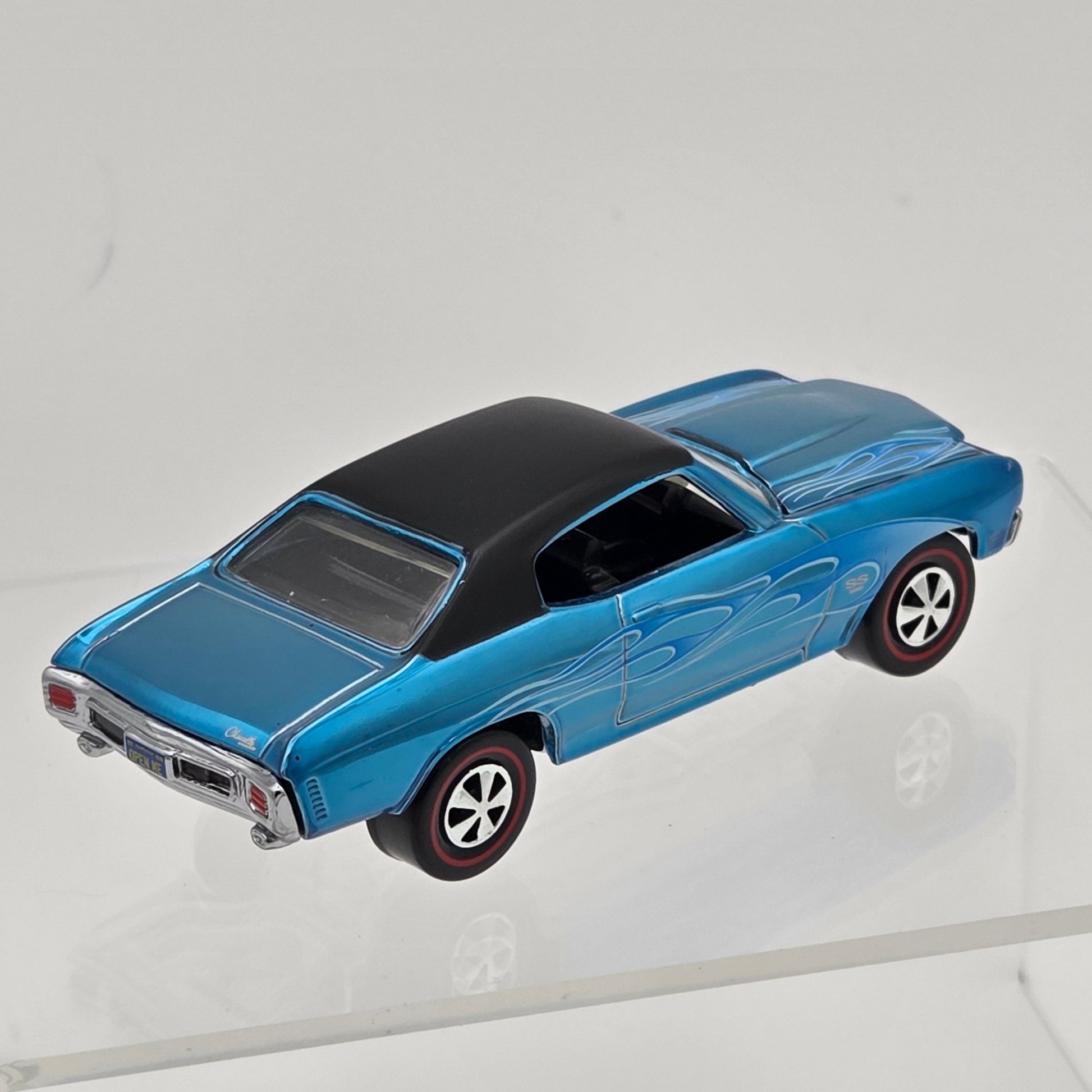 LOOSE RLC 2005 Neo Classics 1970 Chevelle SS. Spectraflame blue with white flames. Opening hood. Plastic vintage redline wheels. Has a rub mark on passenger fender, shown in photo